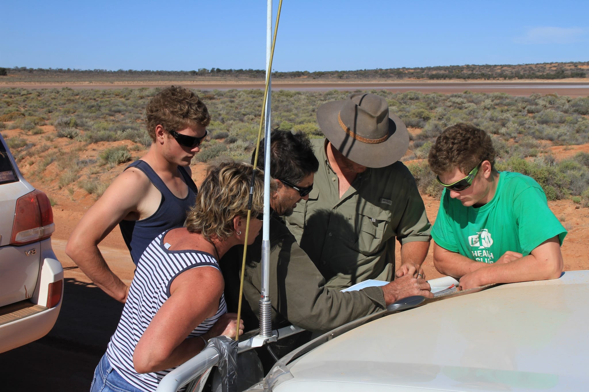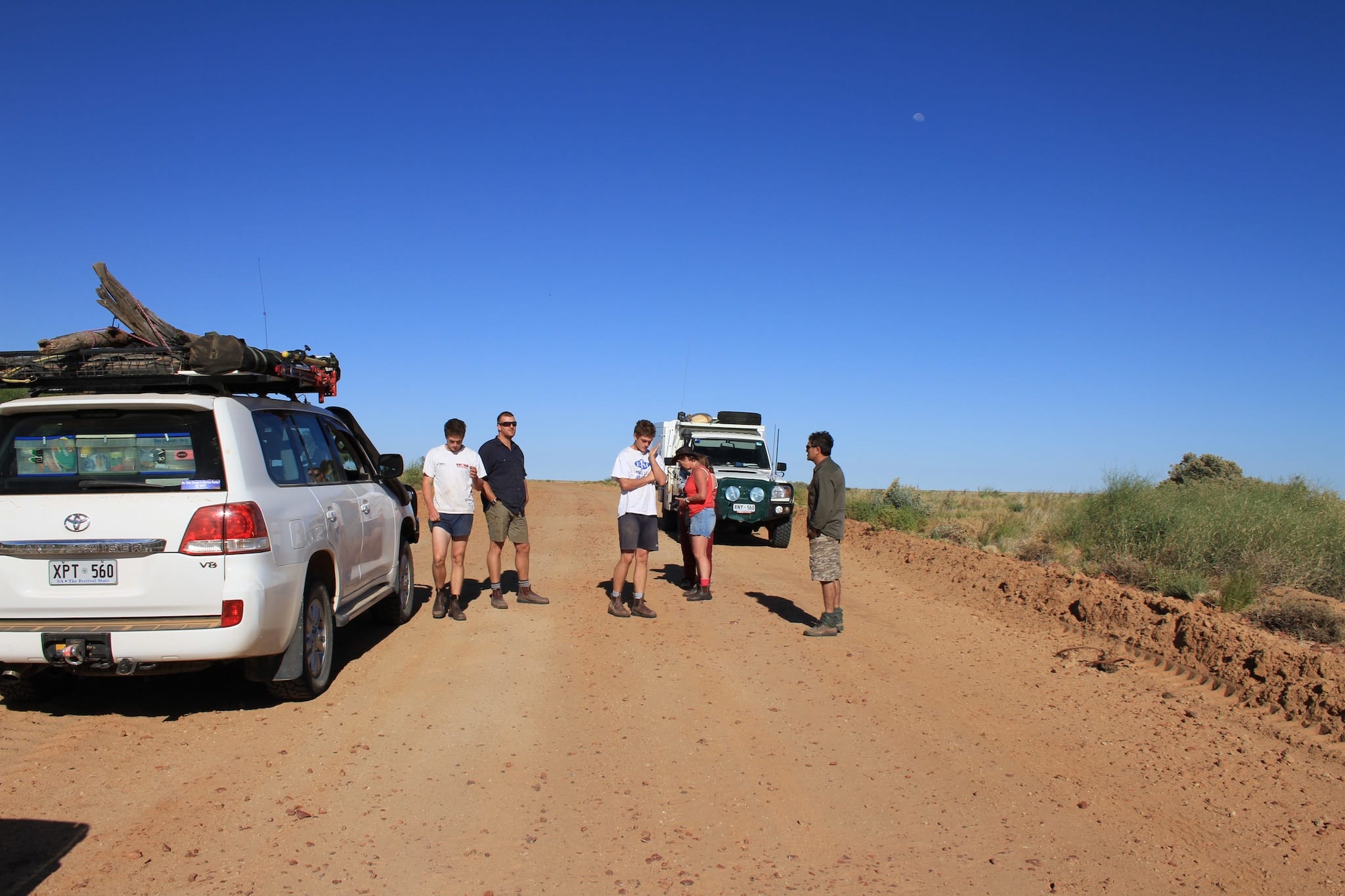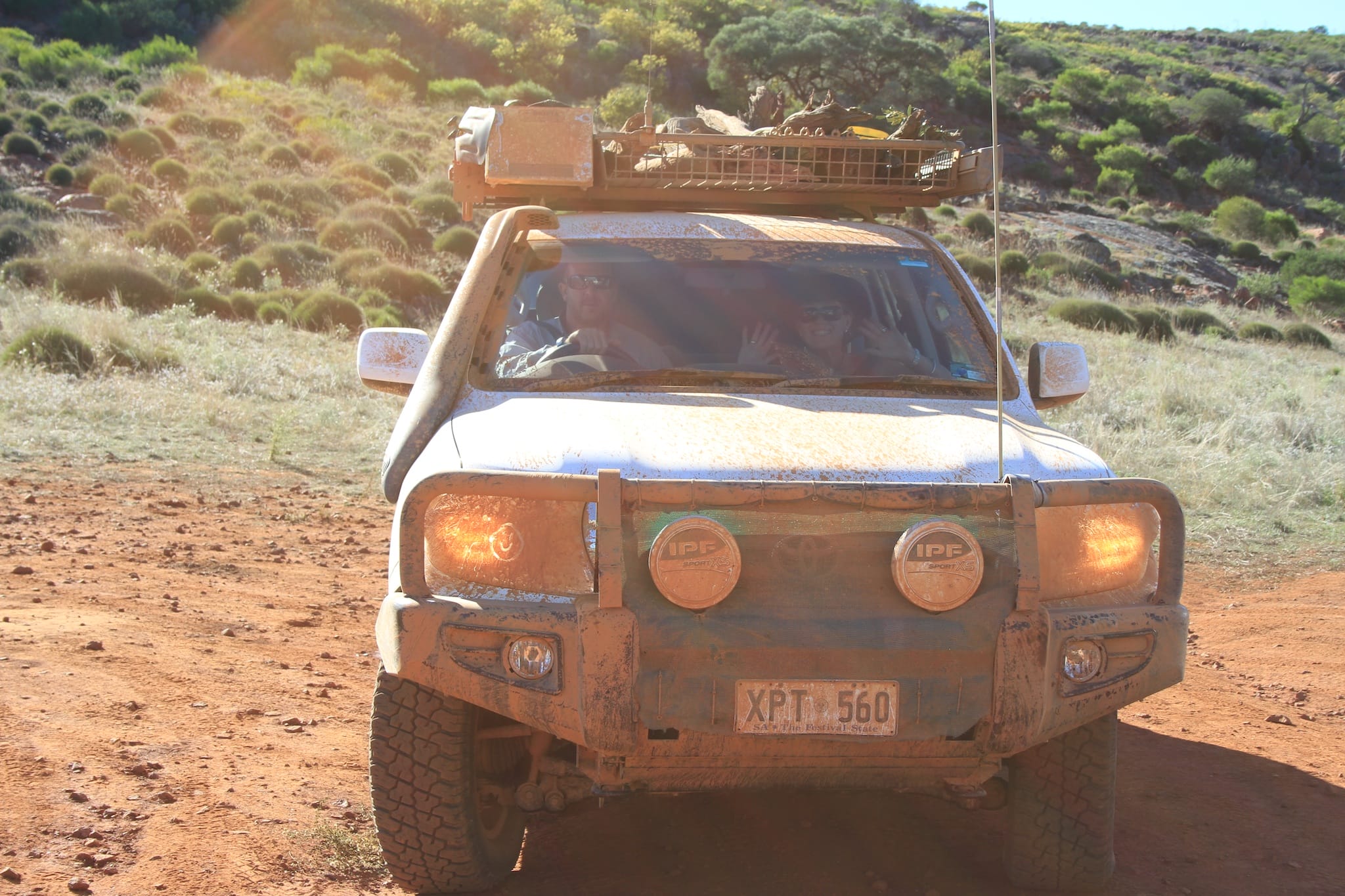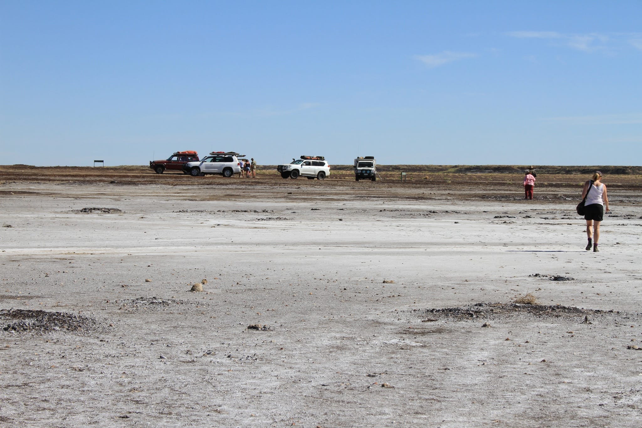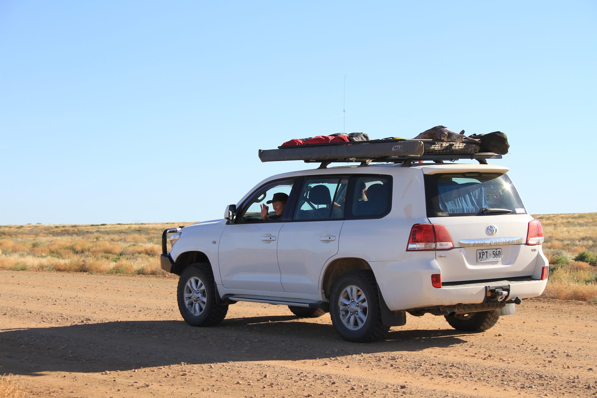 A group of four vehicles travelled from Adelaide through the Flinders Ranges via Marree to Lake Eyre, then back via William Creek, Coober Pedy, Lake Gairdner National Park, the Gawler Ranges, Baird Bay then back to Adelaide.