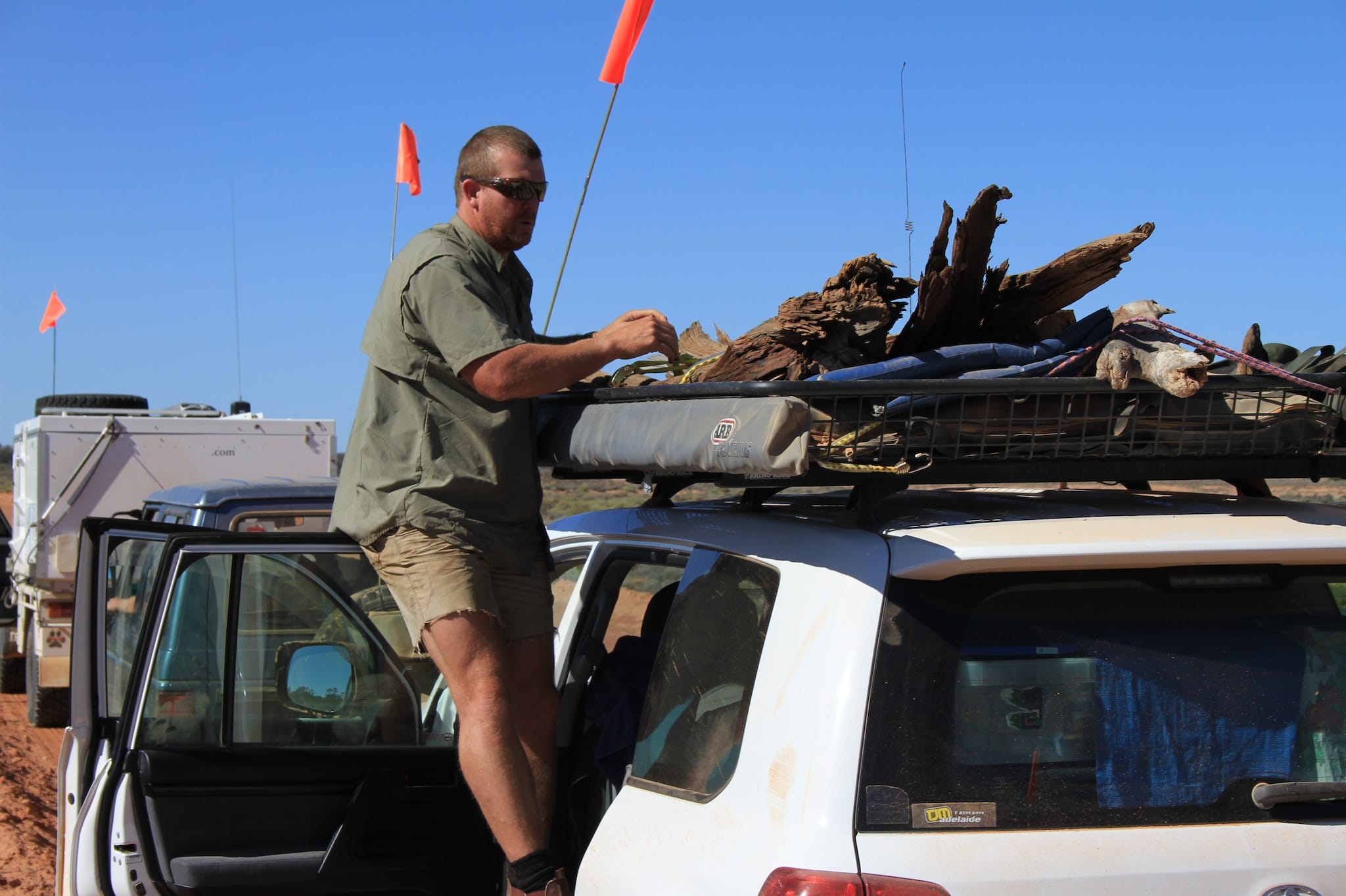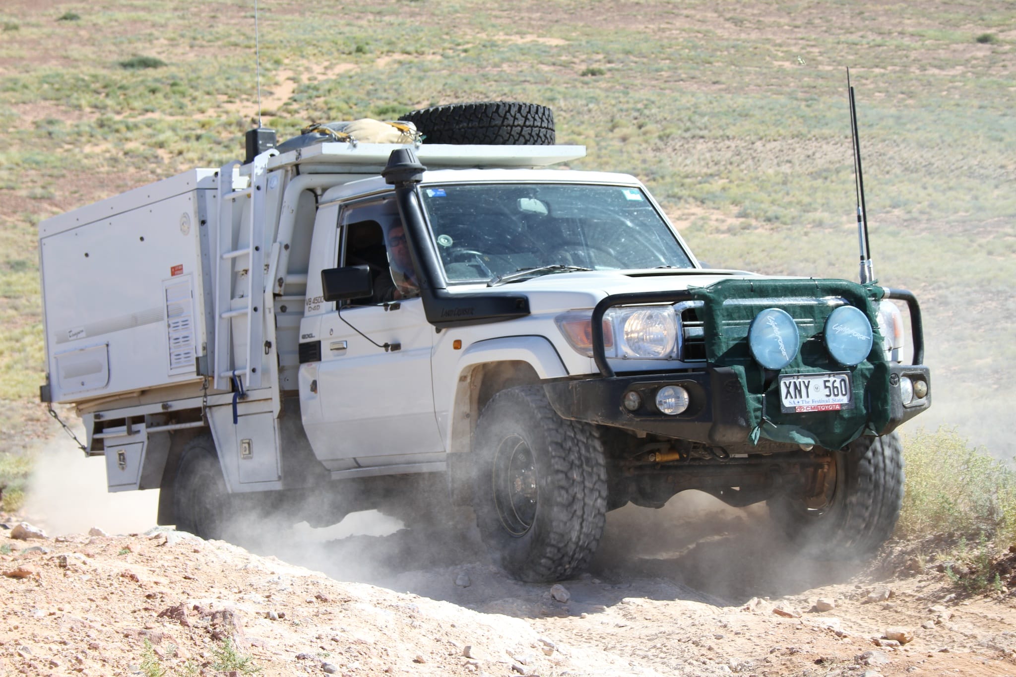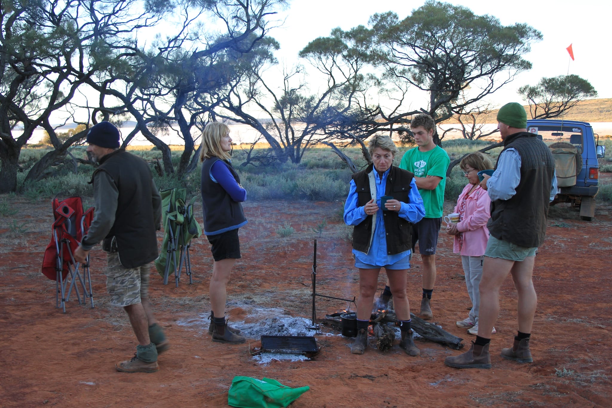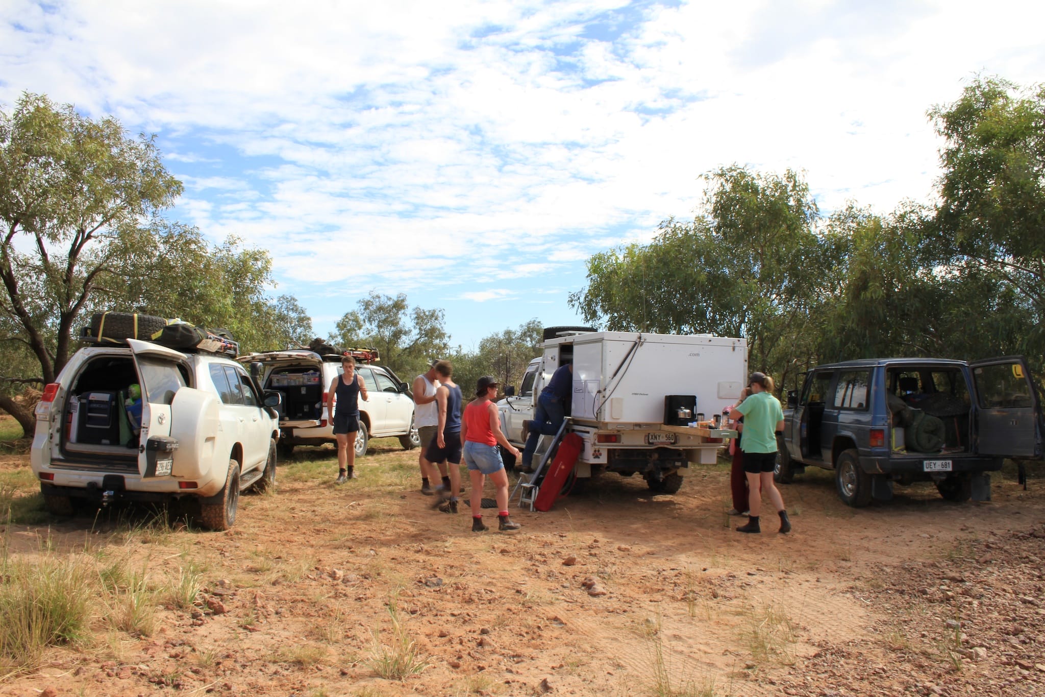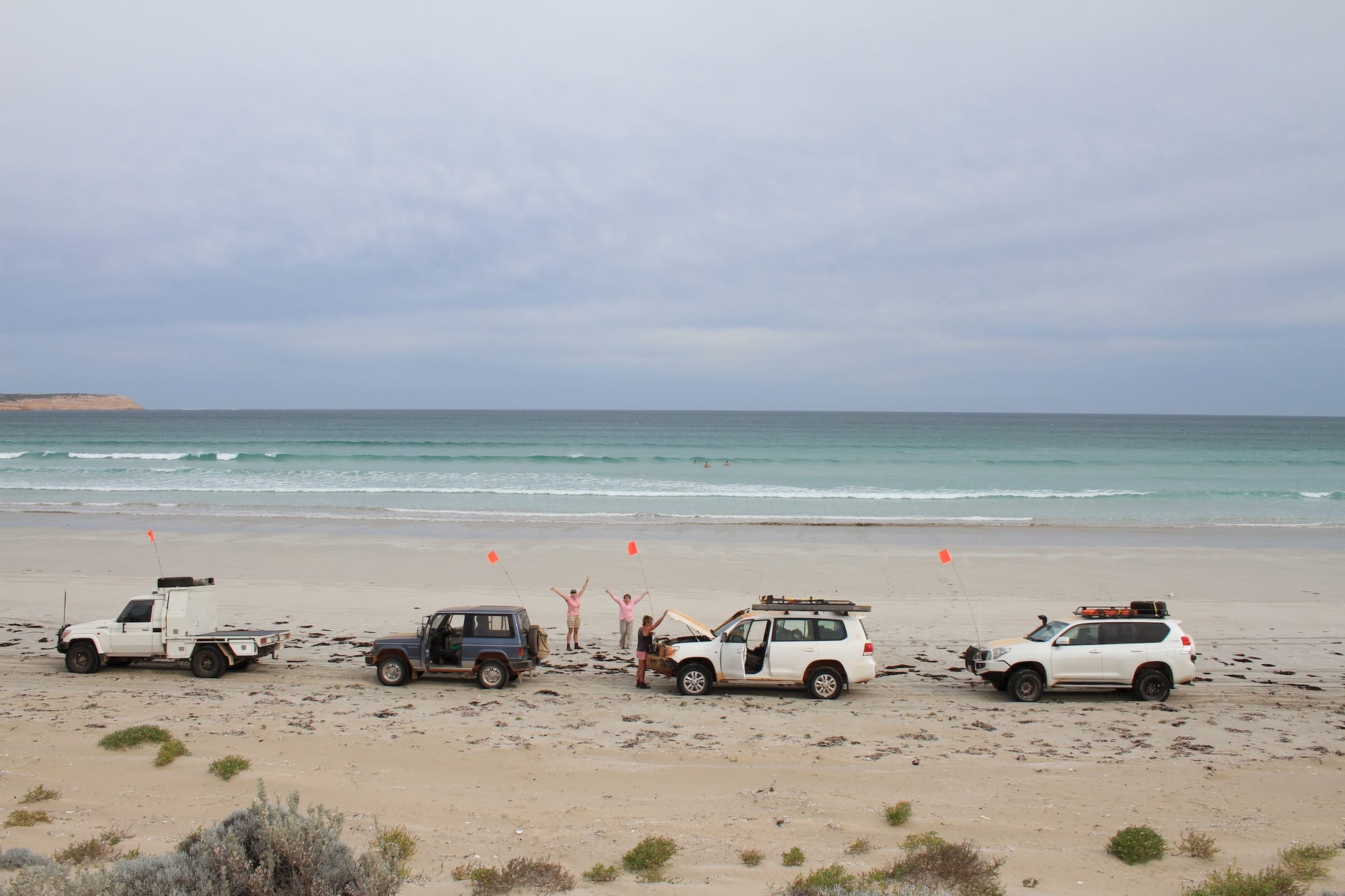 A group of four vehicles travelled from Adelaide through the Flinders Ranges via Marree to Lake Eyre, then back via William Creek, Coober Pedy, Lake Gairdner National Park, the Gawler Ranges, Baird Bay then back to Adelaide.